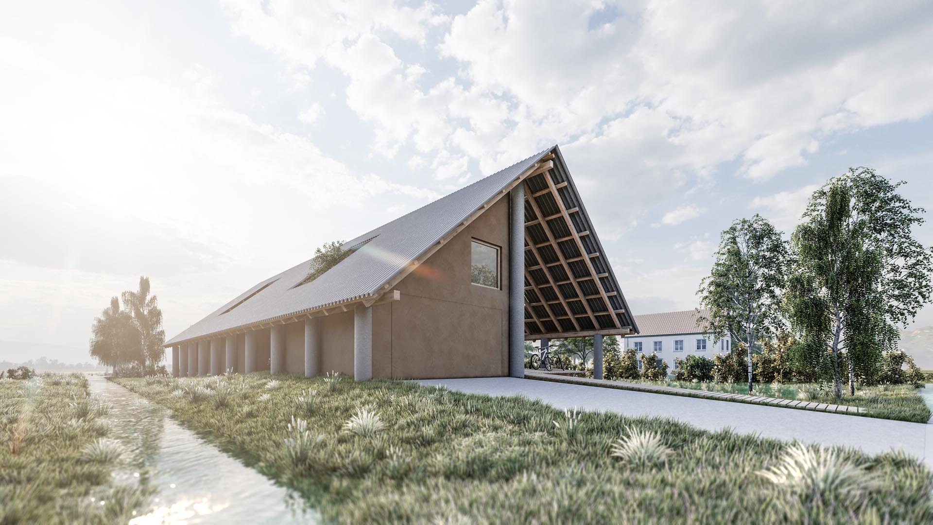 The inspiration for construction on marshland hails from thousands of years ago when the pile-dwelling settlements started to appear on the Ljubljana Marshland about 4500 years ago. At first glance, the simple dwellings of wooden houses on stilts, covered with weathered straw, complied with both environmental and technical guidelines for building on marshland soil. Today, typical builders on the marshland raise the terrain to avoid flooding, thereby slowly raising the overall water level during floods. This elevation of the water level subsequently causes problems for neighboring houses and later for themselves.