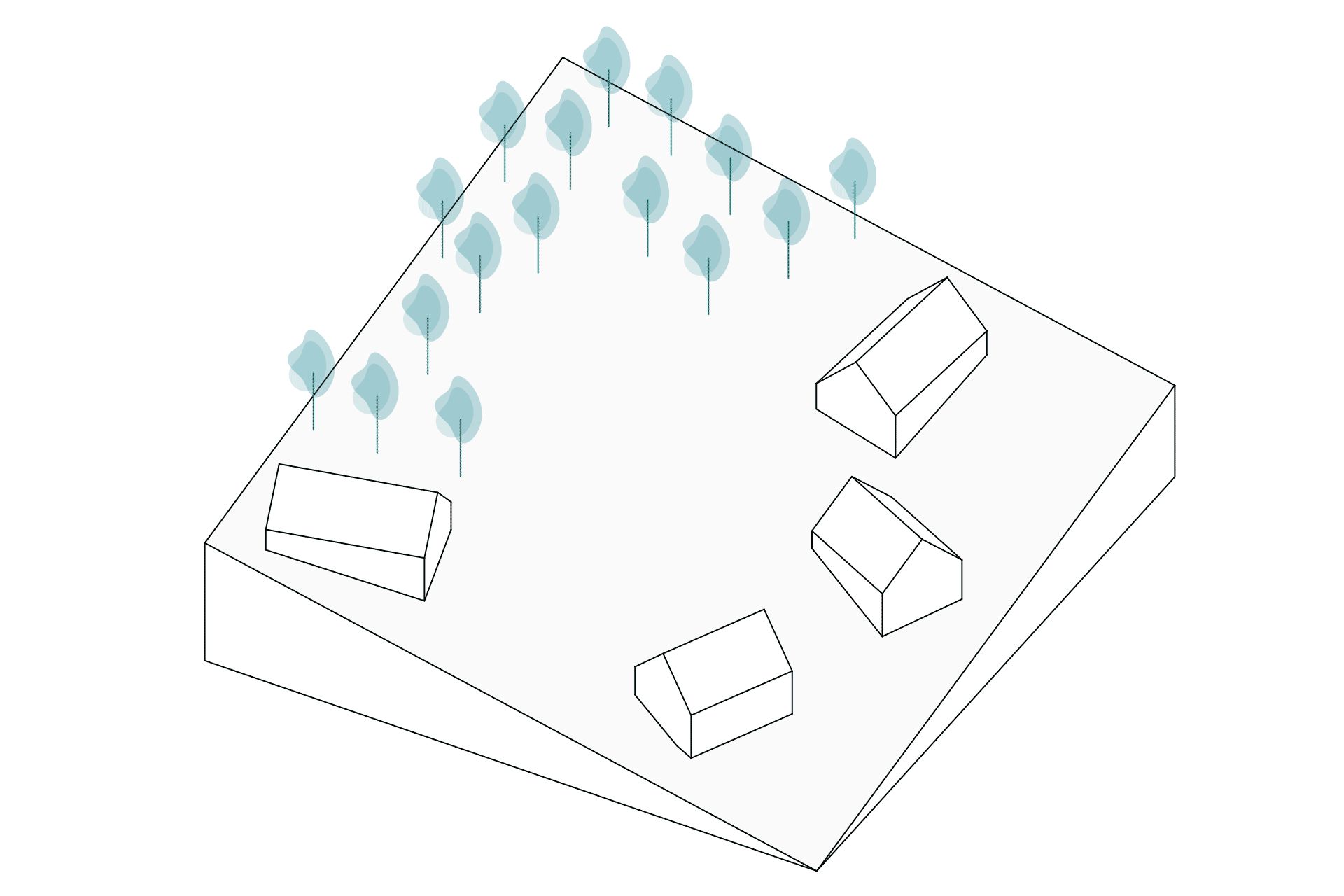 We divided the house into a base, cubes, and a roof. In the monolithic brick base, we placed the children's area. On top of it, we placed three wooden cubes that contain the parents' sleeping area, utility, and workshop area. We inserted the living area into the space between them. The wooden cubes shield it from unwanted external views and guide its views to the outside. The intermediate space functions as a square and the center of day-to-day life as it connects the various programs of the cubes and is linked to the outside through large panoramic windows. A roof covers it, giving it a double-height character in the interior.