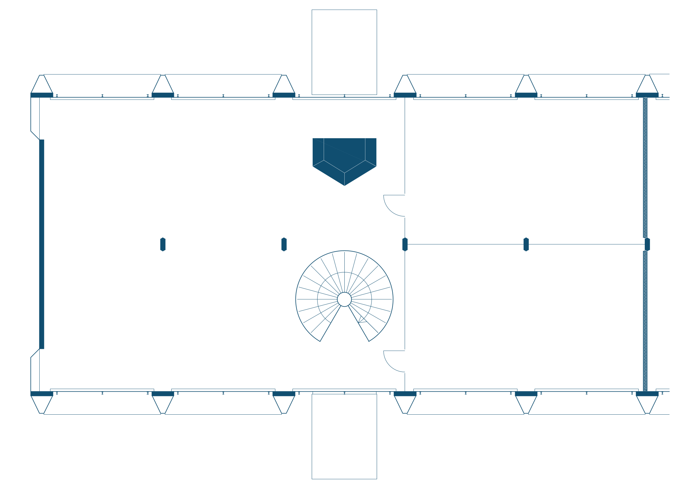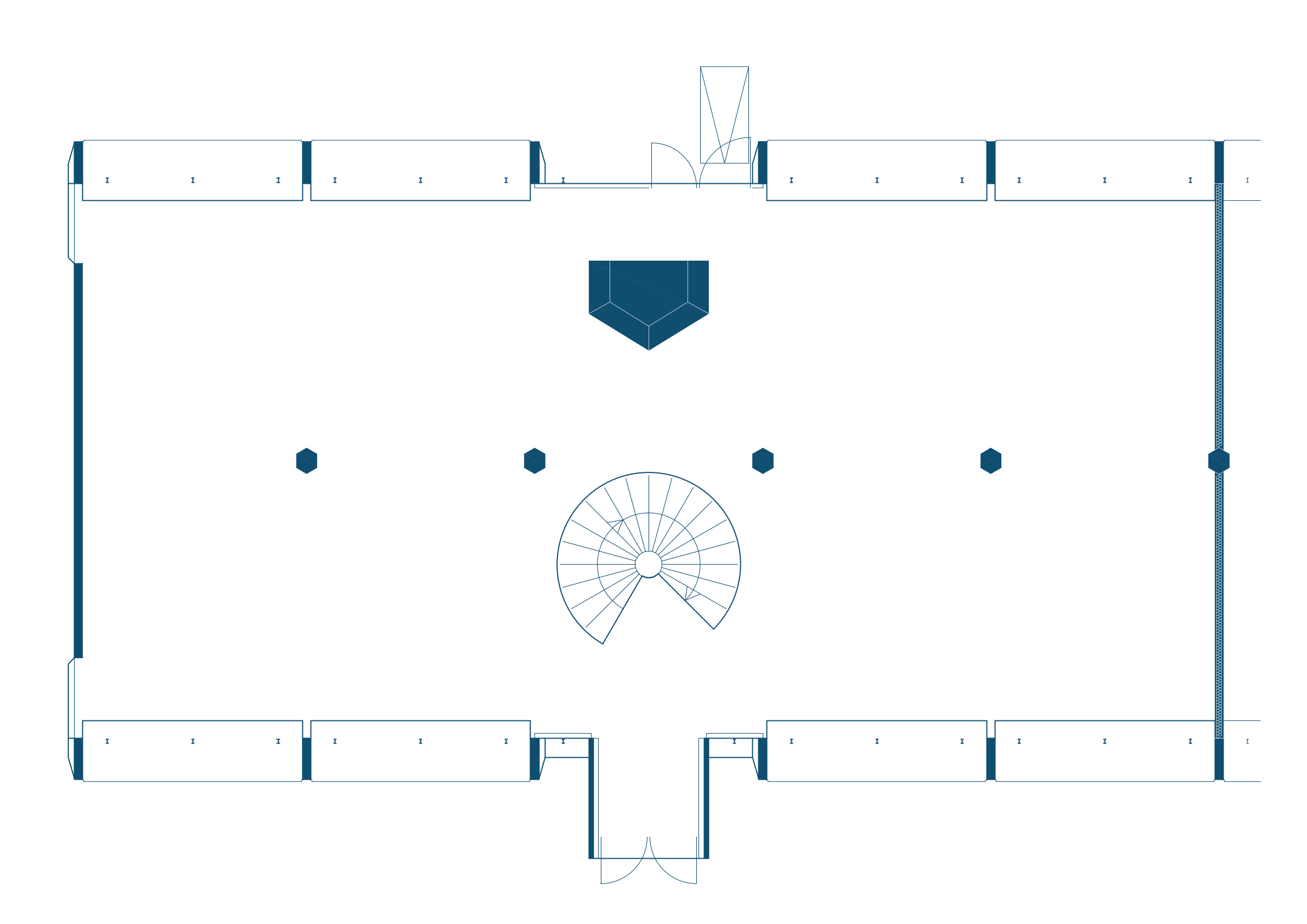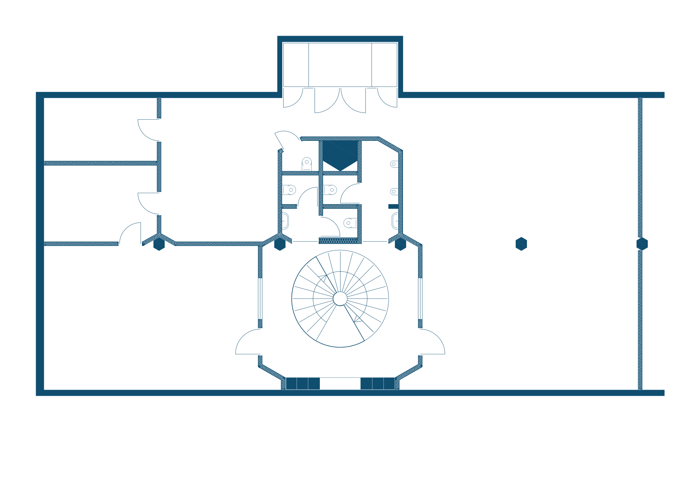 Objekt s svojim odprtim tlorisom omogoča stalno reciklažo in multifunkcionalnost. Jasne notranje infrastrukture so za fleksibilnost objekta ključnega pomena. Električne inštalacije in svetila v odkritih stropnih nišah, vidno prezračevanje s hlajenjem/ogrevanjem, omare, varnostna ograja stopnišča, itd., so postali glavni oblikovni elementi notranjosti, zato smo jih ločili od obstoječega z barvo. Predelne stene v kleti z minimalno fugo proti tlem in stropu vidno kažejo nove posege in omogočajo relativno lahke predelave. Objektu smo z minimalnimi posegi in odstranitvijo motečih elementov omogočili fleksibilnost in hkrati nakazali, kaj je novo in kaj staro. Pripravili smo ga na reprogramiranje.