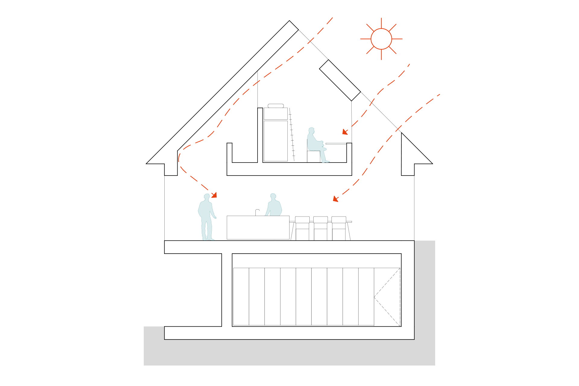 Pri oblikovanju posameznih hiš smo se osredotočili na vnos naravne svetlobe v objekte. Stanovanjska hiša ima v slemenu in nad kapjo svetlobnike po celotni dolžini, zgornje nadstropje pa ne sega do robov hiše, kar pušča prosto pot naravni osvetlitvi. Apartmajska hiša “chalet” ima v nadstropju dva zastekljena dupleks apartmaja, na terasah pa razmaknjeno leseno fasado, ki omogoča, da v apartmaja pride jutranja in večerna svetloba. Trije butični “chaleti” so na celotni južni strani zastekljeni, njihova notranjost pa je oblikovana kot »loft« okoli stopnišča, ki s svojimi dvojnimi stopnicami postane prostor posedanja in druženja.